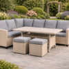 - Set Includes:1 x Two-seater Corner Sofa, 2x chairs, 1 x Coffee Table, All cushion. All tools provided in the packaging to build.